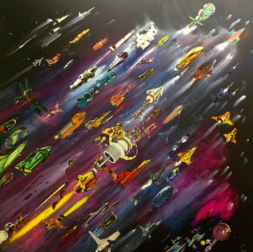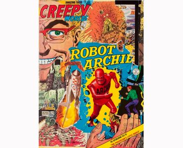 "Dada artist Sam Dodson describes himself as ‘a man trapped in his own collage’ and surrounds himself with a cornucopia of comic books, found objects and curious ephemera in an atmospheric studio on Johnson’s Island in Brentford🤡 Sam, aka Salman Gita, is also a talented musician who performed in the post-punk band The Transmitters in the 1970’s before forming the world beat band Loop Guru during the 1990’s and adorning many an album cover with his surreal collages" Bob Osborne, curator "Cash is King & Cash is King 2"t, Australia and North America. I also teach intensive weekend workshops two or three times a year.